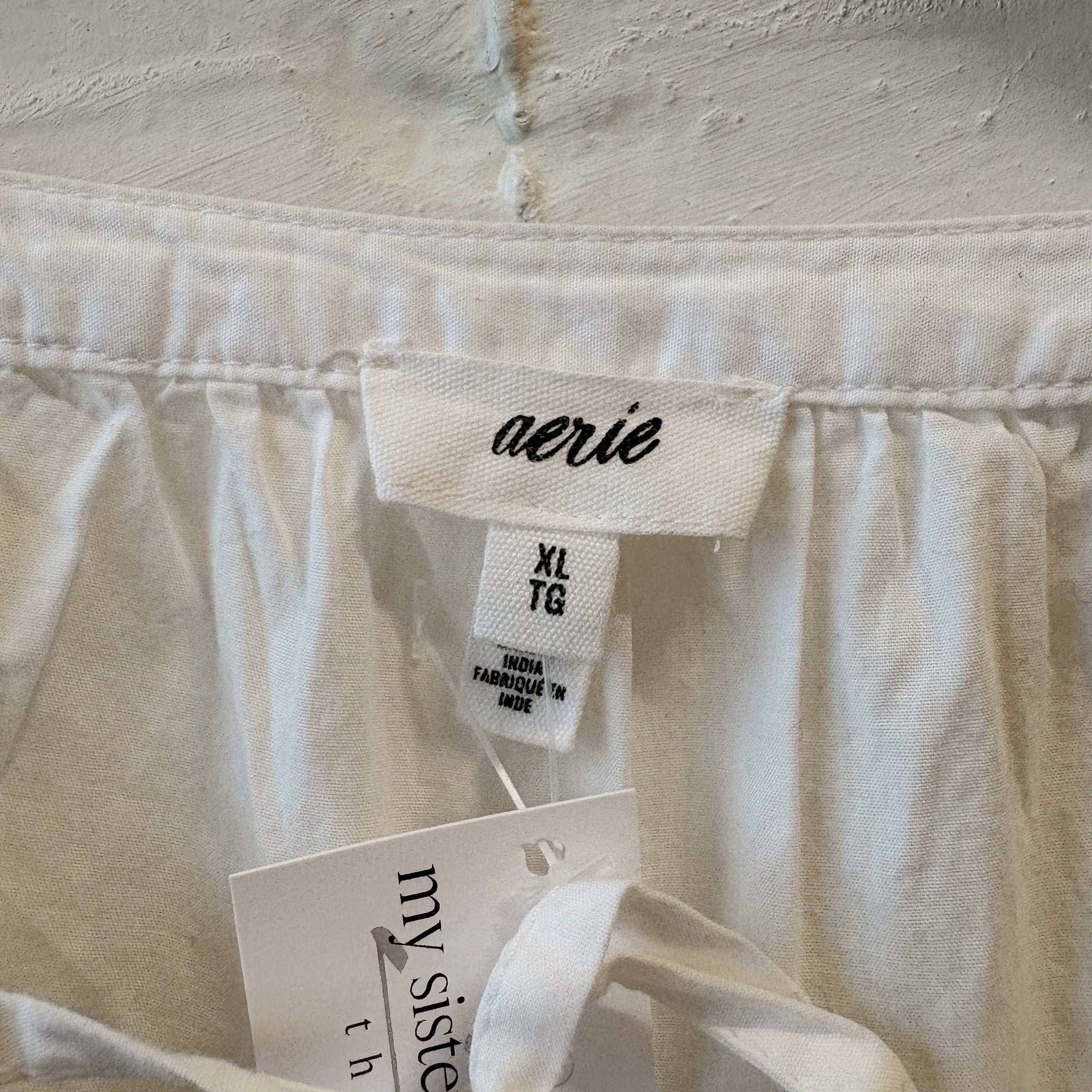 SIZE XL | Aerie White Tie Top $19.00 $19.00 On Sale Now Sold Out Unit price ( / per ) SIZE XL Choose Option Default Title - $19.00 Added to Cart View Cart or Continue Shopping. Cart Error Some items became unavailable. Update the quantity and try again. Decrease Quantity Increase Add to Cart This item is a recurring or deferred purchase. By continuing, I agree to the cancellation policy and authorize you to charge my payment method at the prices, frequency and dates listed on this page until my order is fulfilled or I cancel, if permitted.